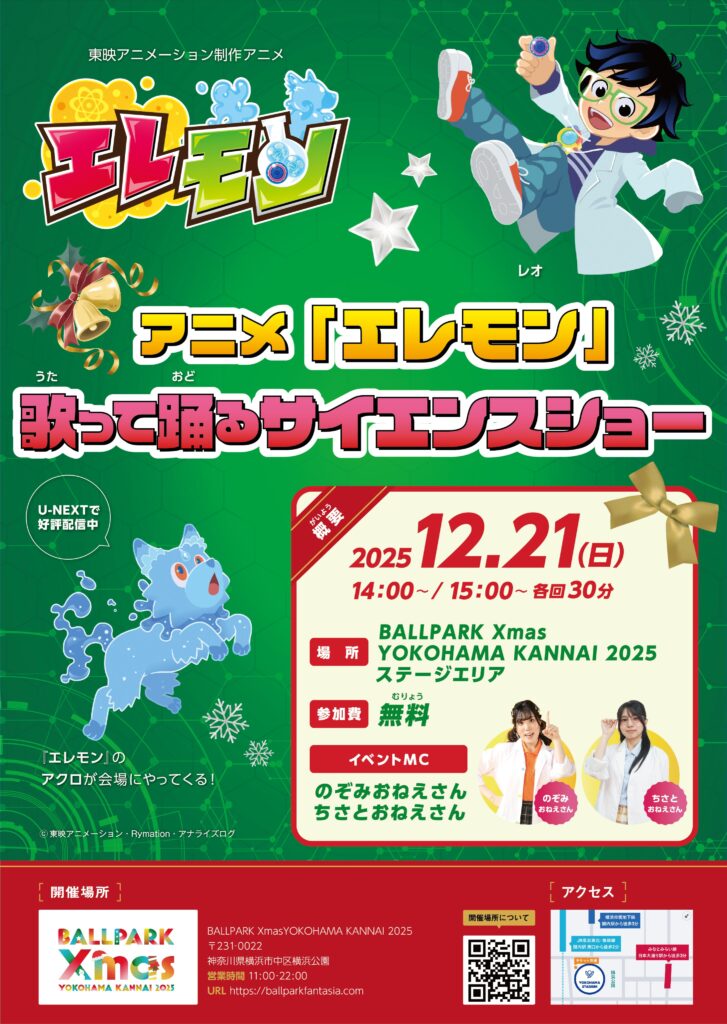 アニメ『エレモン』の歌って踊るサイエンスショーが今週末に開催されます。